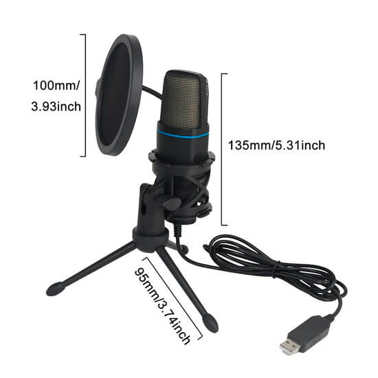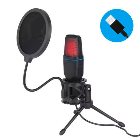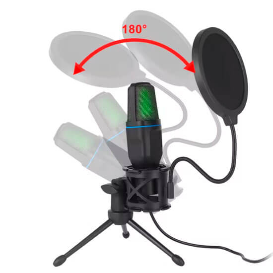 - Paquete incluye: 1 micrófono rgb, 1 cable de conexión USB, 1 soporte de micrófono, 1 sistema anti-pop, 1 manual de usuario.