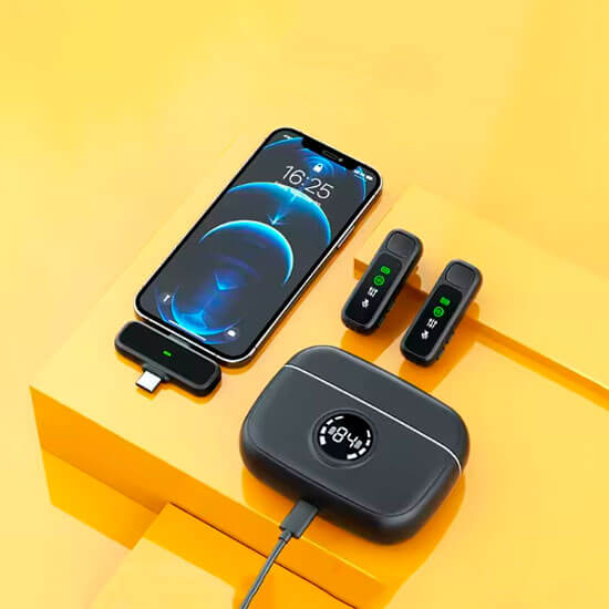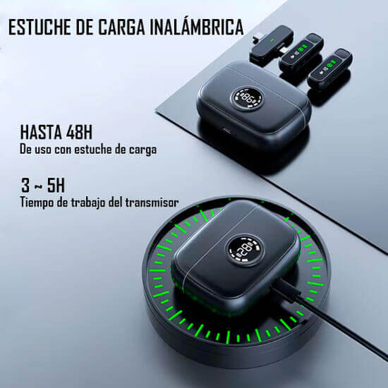- Paquete incluye: 2 micrófonos recargables, 1 receptor de micrófono, 1 estuche de carga, 1 cable de carga USB, 1 manual de usuario.