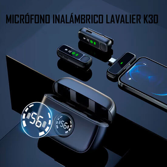 Micrófono inalámbrico lavalier K30 con cancelación de ruido, pantalla digital, tecnología inalámbrica 2,4G, clip de collar omnidireccional, perfecto para grabación en vivo.