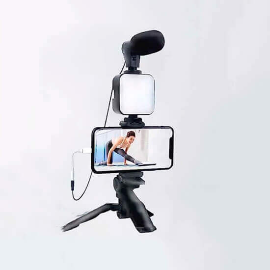 Kit de vlogging para teléfono inteligente con trípode, soporte para teléfono, micrófono, luz de relleno y control, arrancador para tiktok, transmisión en vivo, vídeo, youtube.